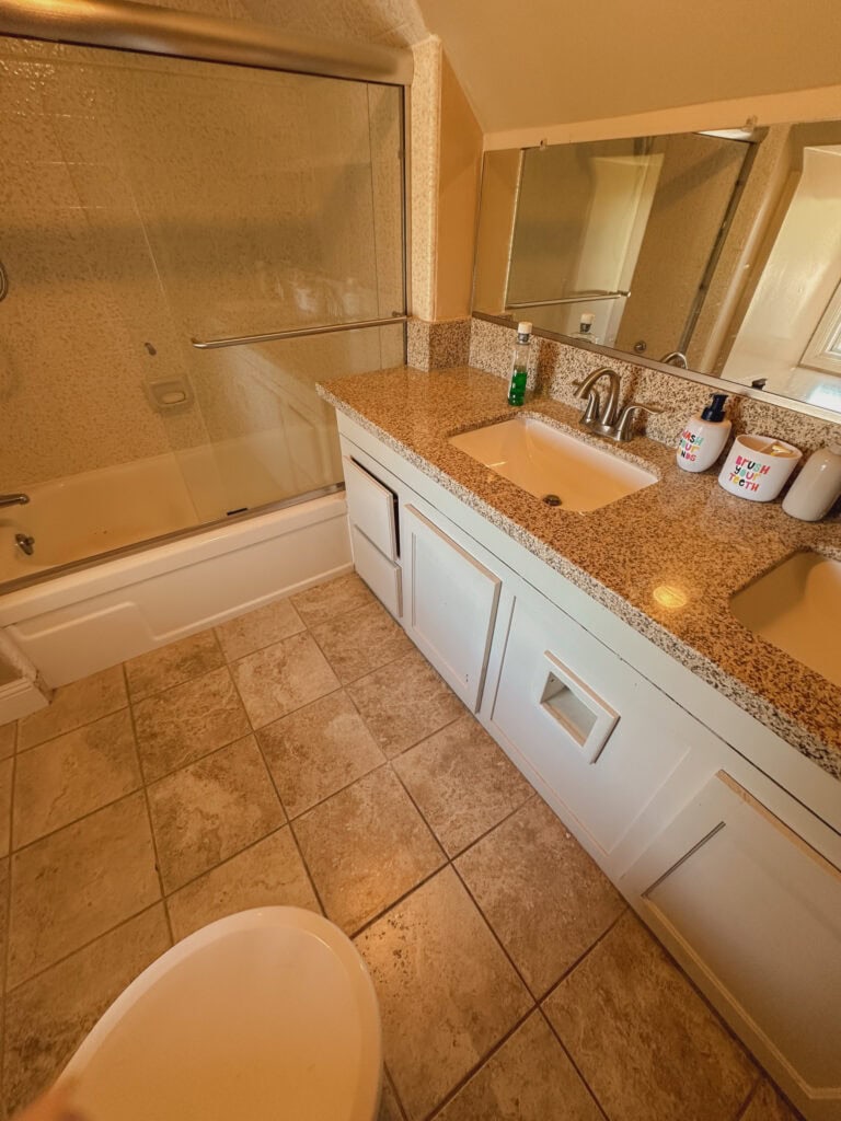 Since a full renovation is not in our budget right now, I had to get creative. The kids (my stepkids) were about to go on a long vacation with their mom, so I knew this was the time to makeover their bathroom!
