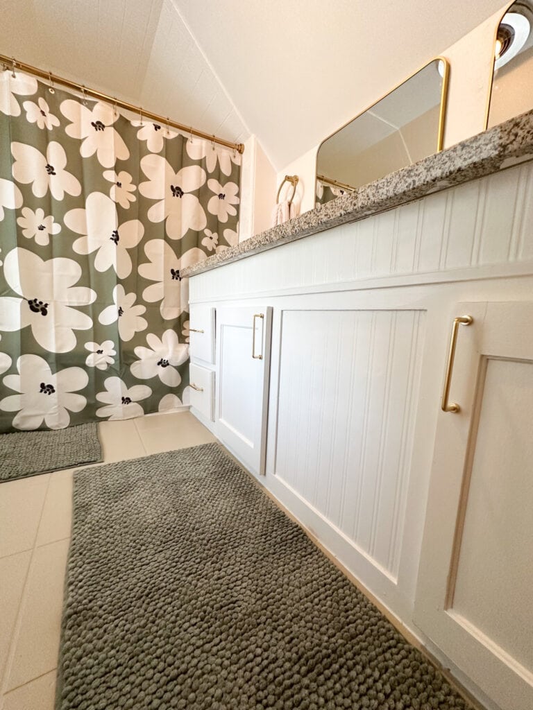 But also, I am on a tight timeline and budget with this bathroom makeover, so retiling wasn’t an option.