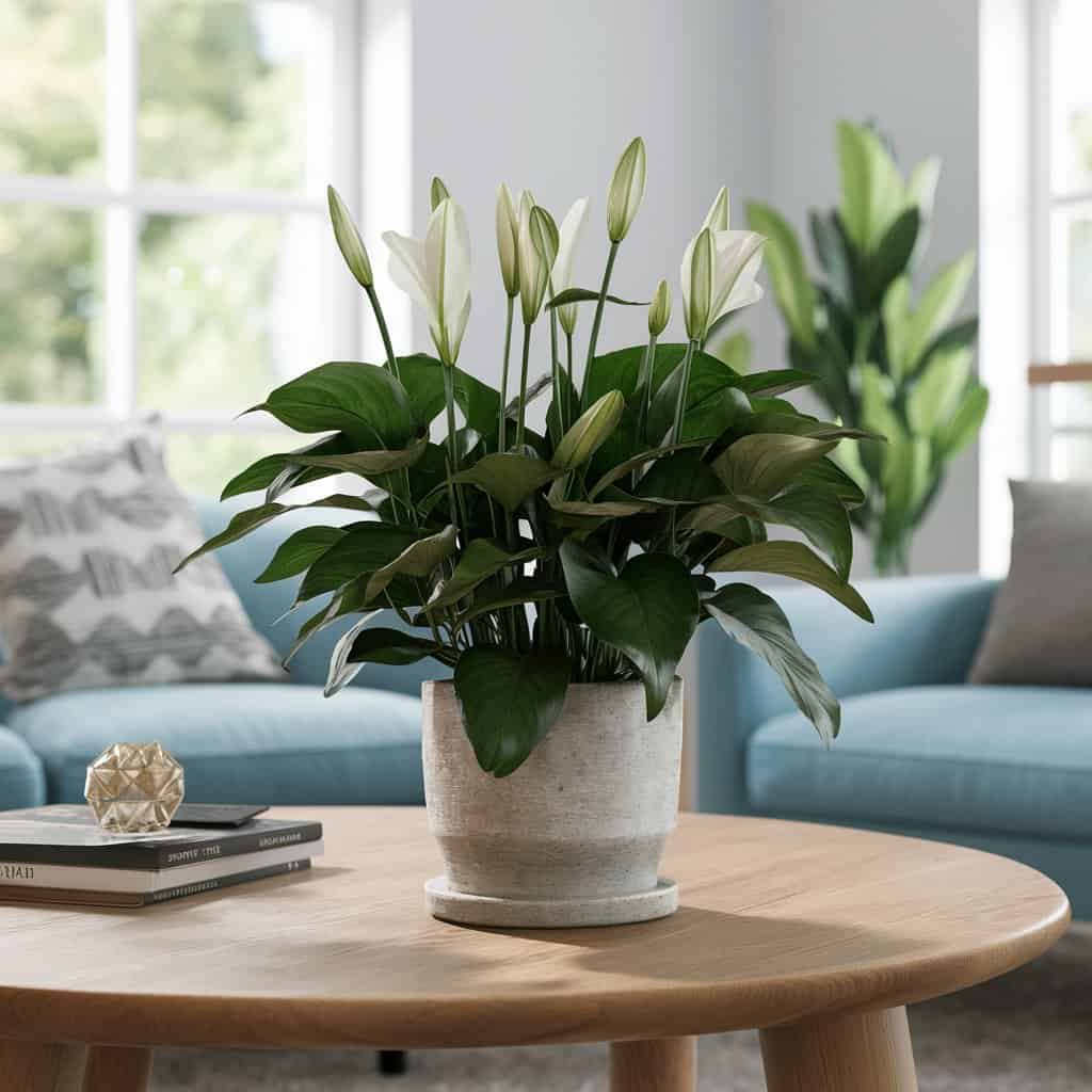 The Peace Lily, with its graceful, white-blooming flowers and broad, glossy leaves, is a beloved big leaf houseplant. This versatile plant not only adds a touch of natural beauty to any space but also boasts impressive air-purifying capabilities.
