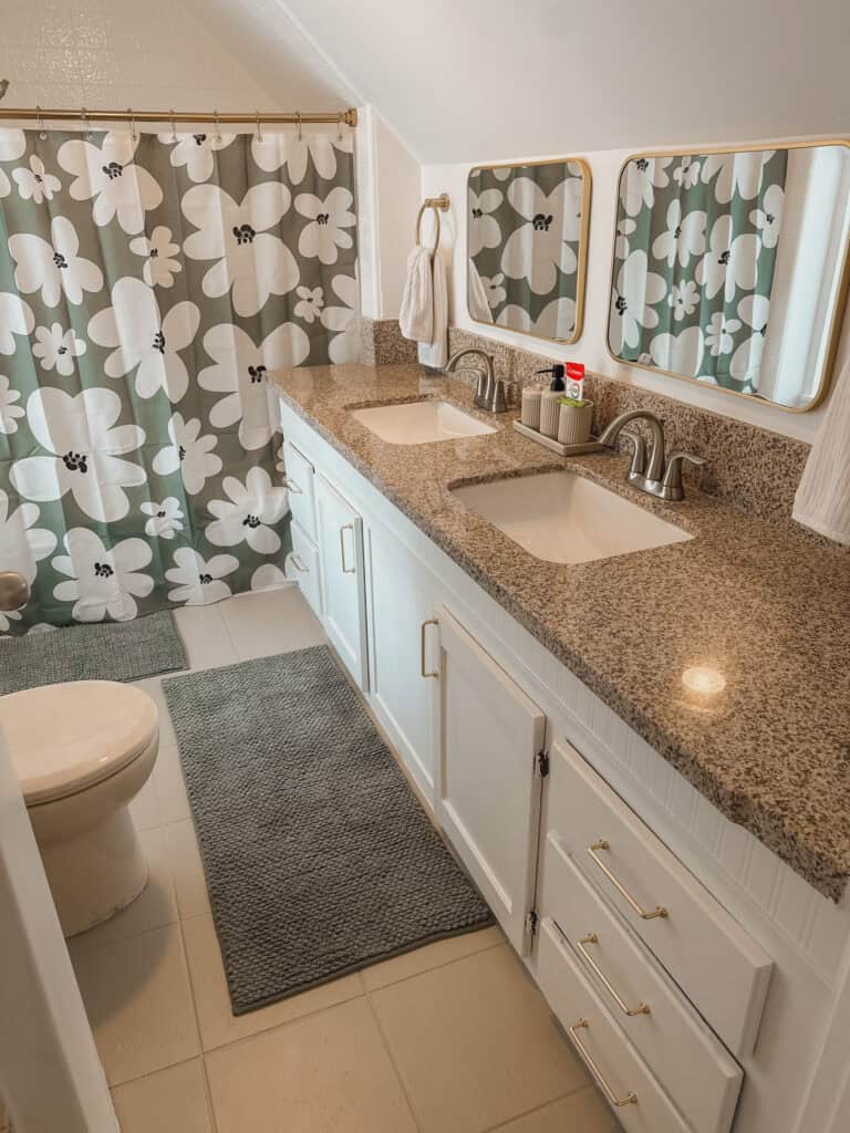 Floor paint was the perfect solution for us. The bathroom was old, dark, dated, and felt dirty- it did not feel like a bright, clean space, which is what I feel like a kids’ bathroom should be!
