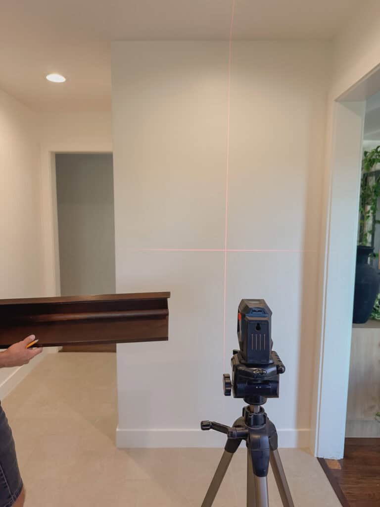 Mark your peg spacing — mine start 6 inches from each edge with 7 inches between pegs. I used a laser level to make sure they were, well, level.