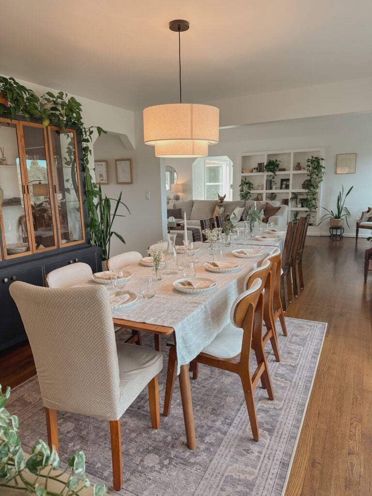 One of my favorite things about this dinner party was that it didn’t have to be perfect — and it certainly didn’t have to be expensive. With a little planning, a few thrifted treasures, and simple greenery, it’s easy to create a warm, memorable atmosphere your guests will cherish long after the evening ends.